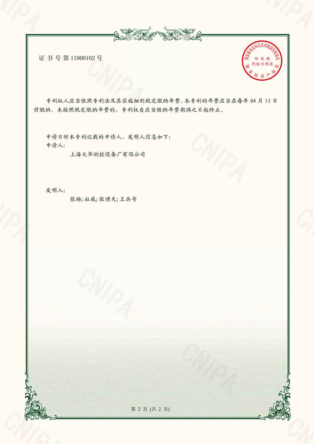 2020年 实用新型专利证书-一种智能防窃电电表电子证书;